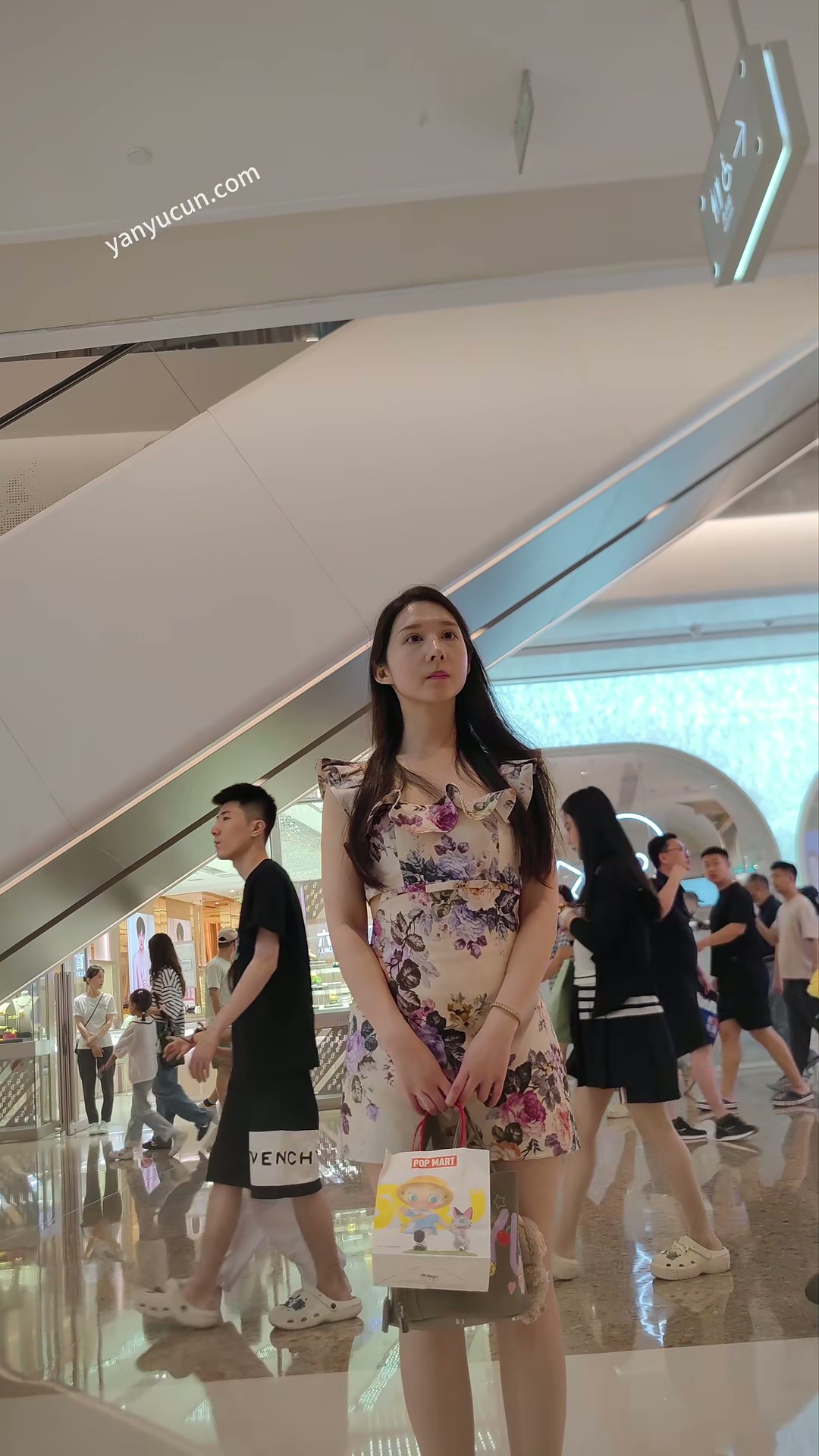 XM365黄色印花连衣裙极品气质美女和男朋友逛街,豹纹蕾 ...