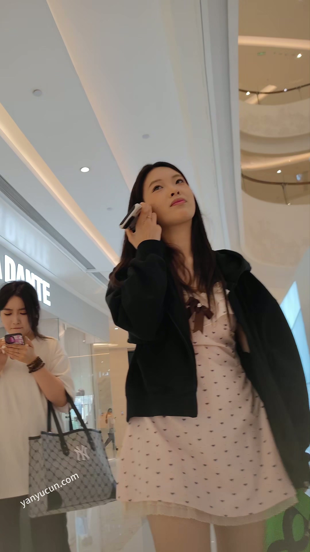 XM395粉色连衣裙小姐姐和闺蜜逛街,黑色丁字裤 ...