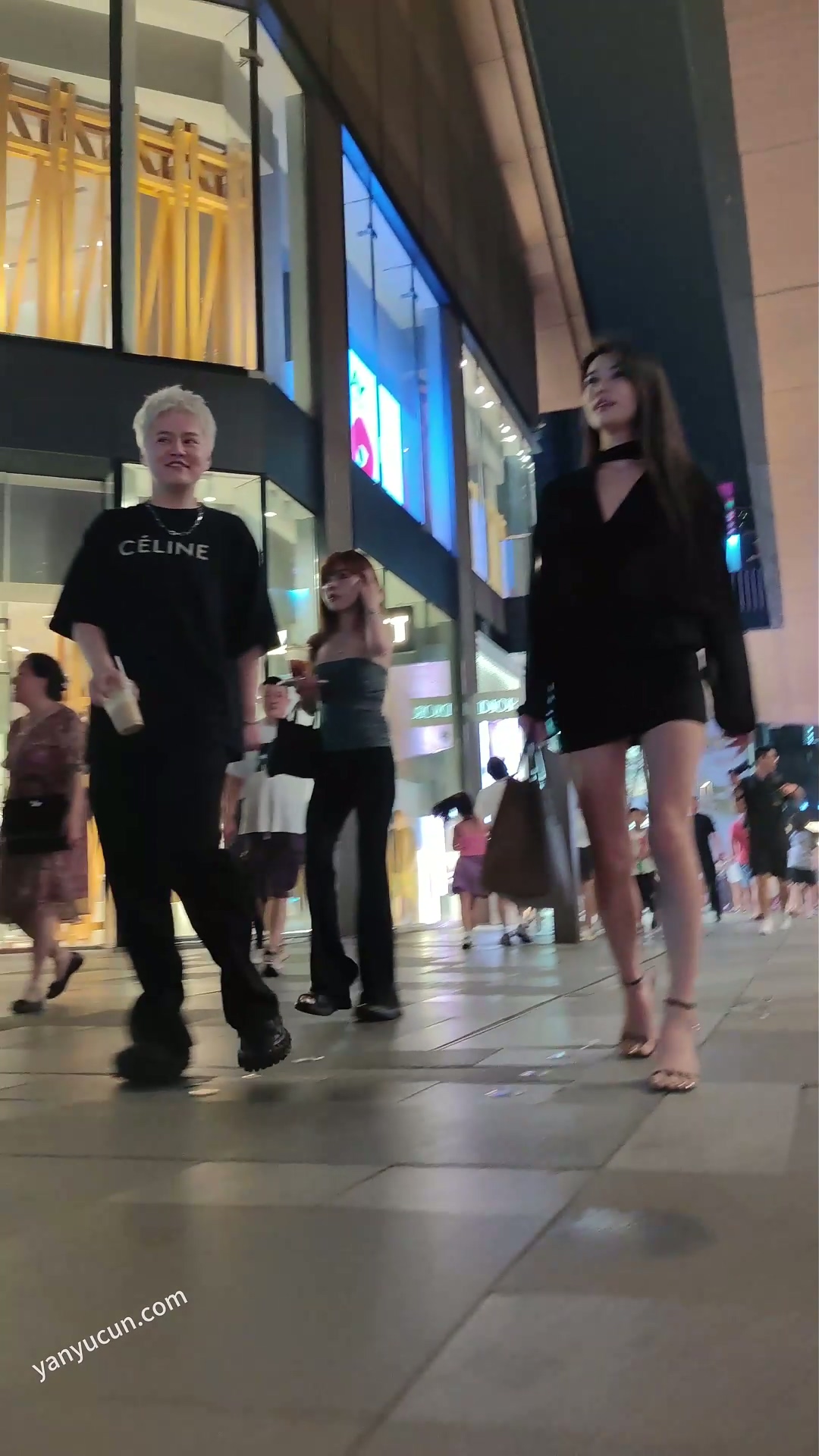 XM428黑色超短裙细带高跟鞋极品美女被街拍,白色内 ...