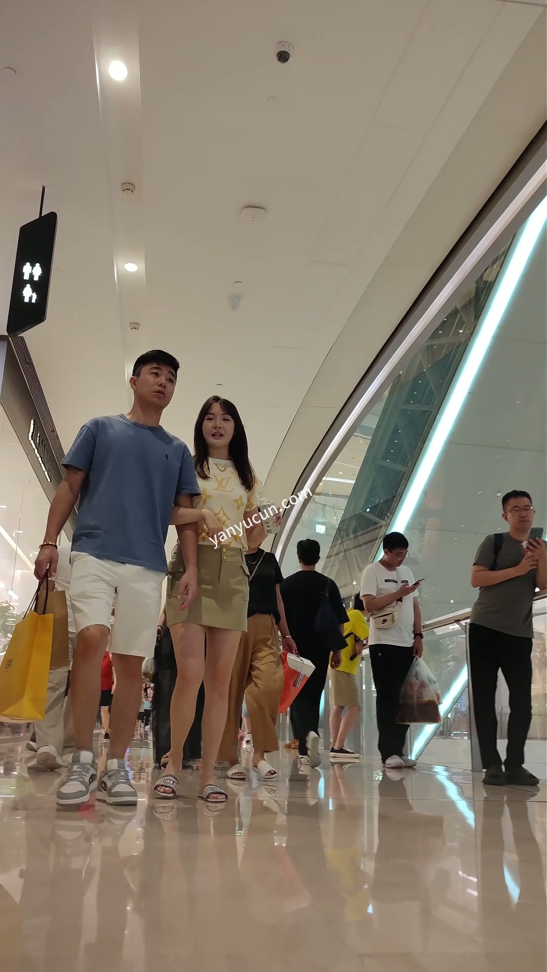 XM436绿色超短裙美女和男朋友逛街,白色内内 ...