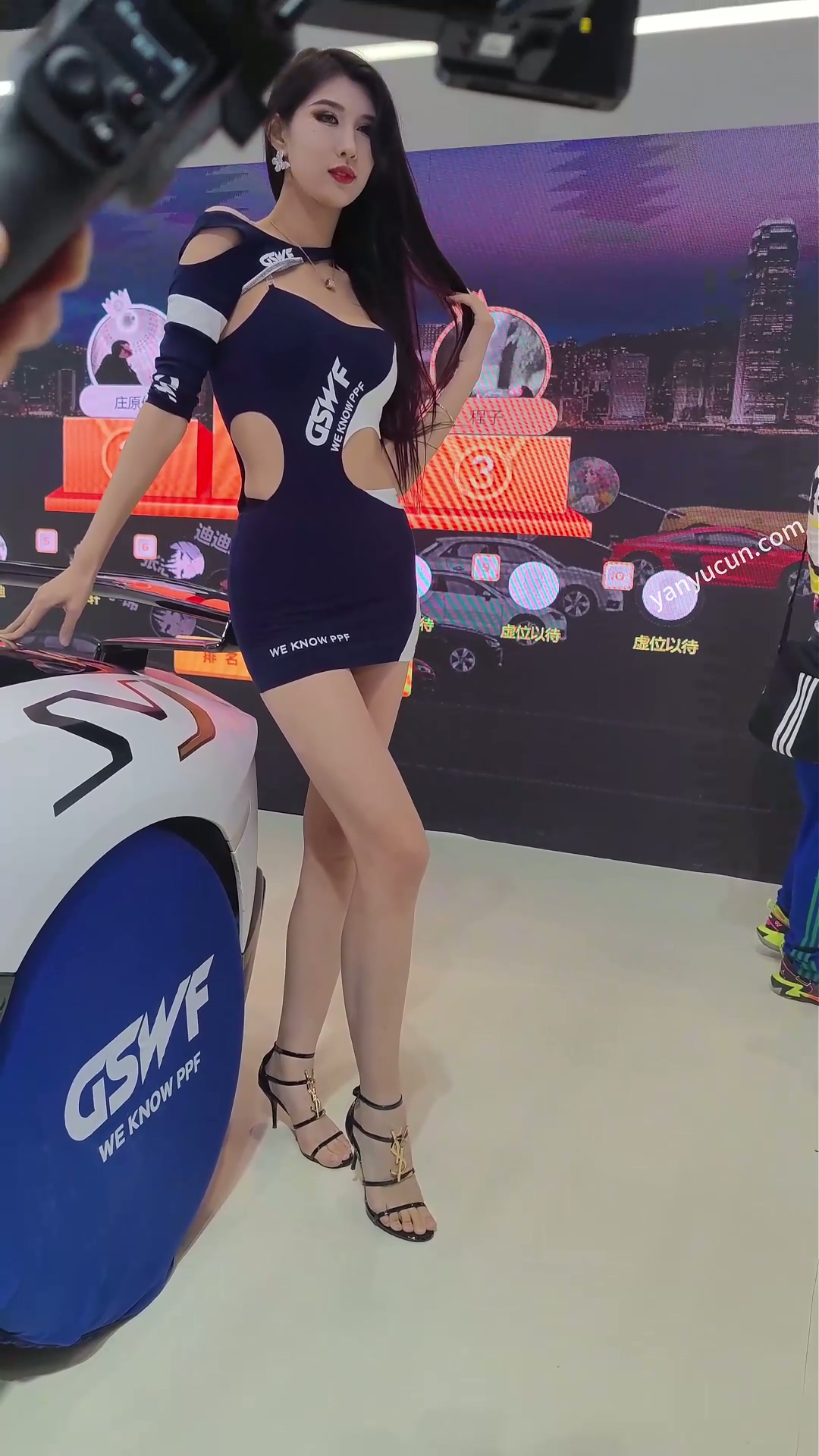 XM470车展极品美女车模,绿色窄内 470