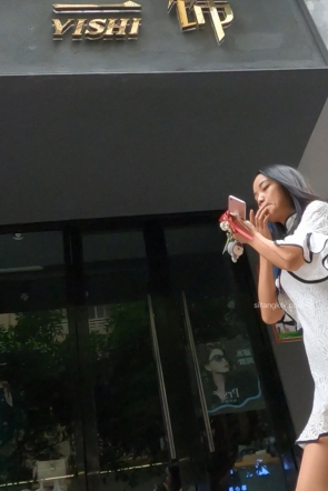 (KC327)和男友逛街的天蓝连衣裙妹子,微透白N