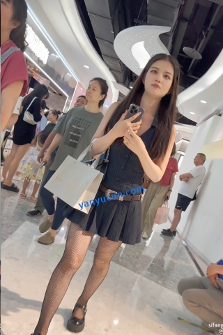 trump971【KFC】短裙露背装美女笑着逛街。镶钻网袜白色薄内贴脸CD