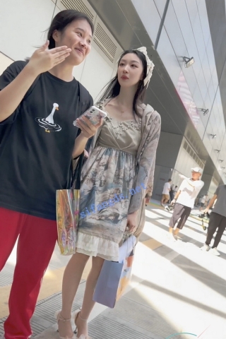 (BC-AA-322)花裙小姐姐靠在墙边镜头旁被CD..无痕内正面微透